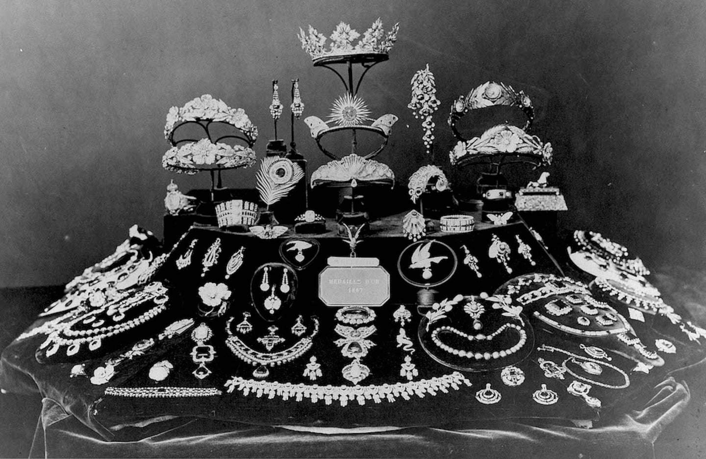 The 1867 World Fair in Paris awarded Mellerio the gold medal for its achievements, in particular following the presentation of the first large peacock feather brooch with jewels and the Rocaille tiara, which was bought by Queen Isabel II of Spain.