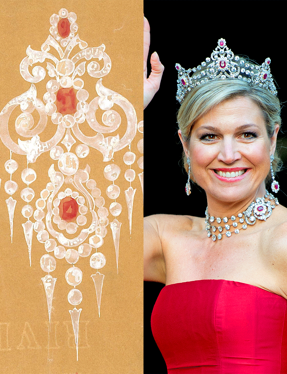 At the end of the 19th century, it was the Dutch Court that filled Mellerio's order books. Notably with this impressive set of rubies, often worn today by Queen Maxima of the Netherlands. The set is composed of 36 exceptional rubies, and was ordered for the coronation of Queen Emma in 1879.