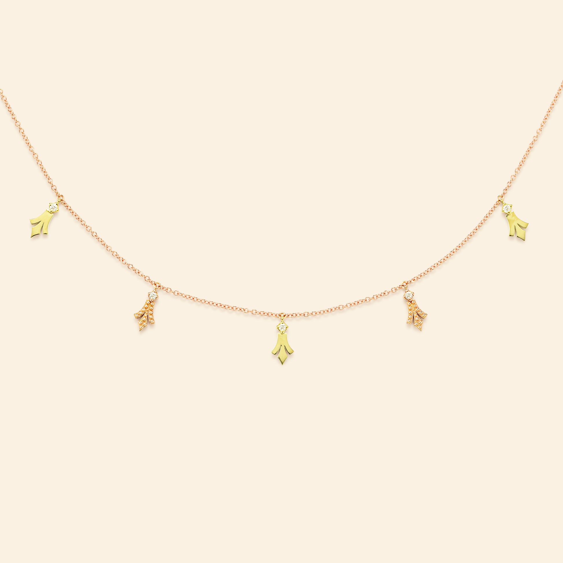George necklace, in 18k pink gold and 18k green gold, set with 5 diamonds on a 1mm forçat chain, size adjustable to 36cm or 38cm with return ring