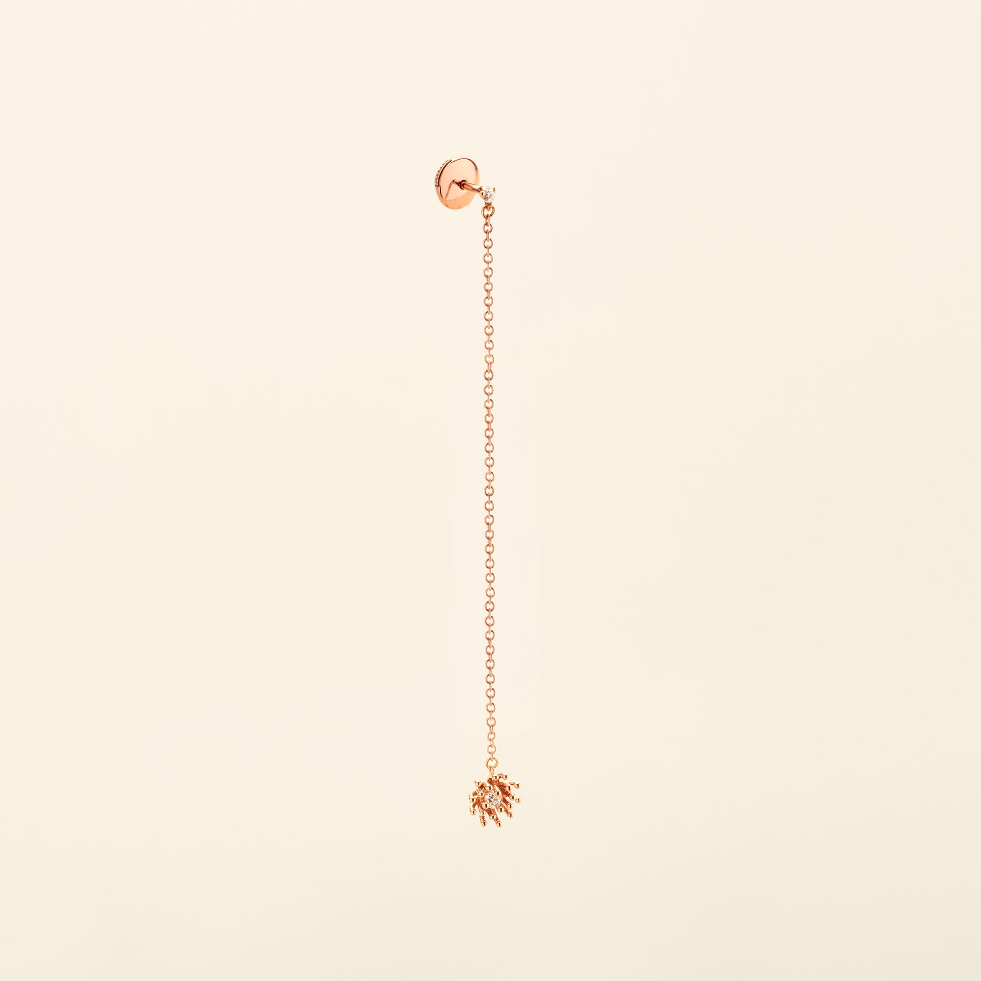 Le Petit Cactus Vanille earring L in 18k pink gold set with 2 diamonds on a 1 mm forçat chain with alpa System