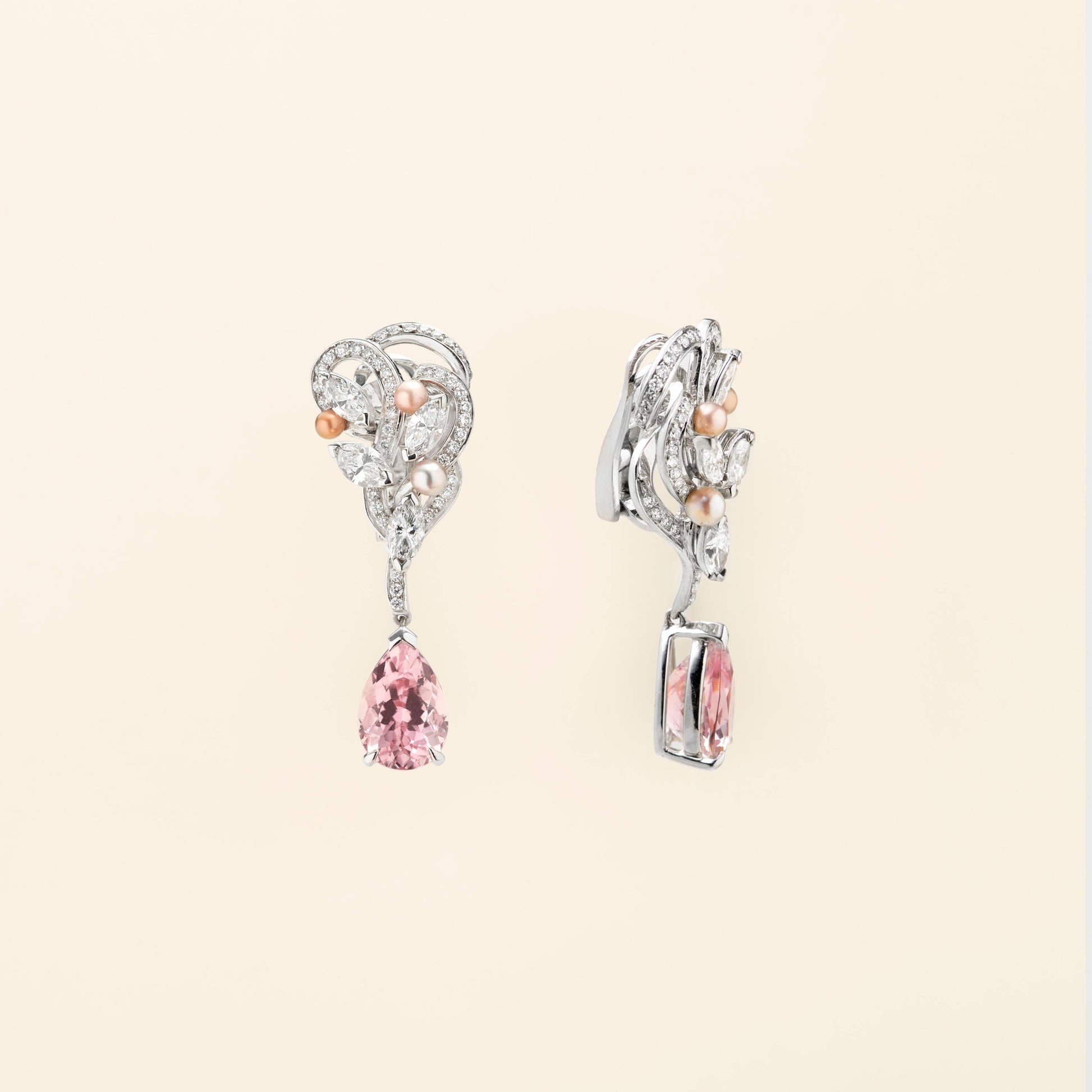 White gold and diamond earrings with pearls - High jewelry earrings
