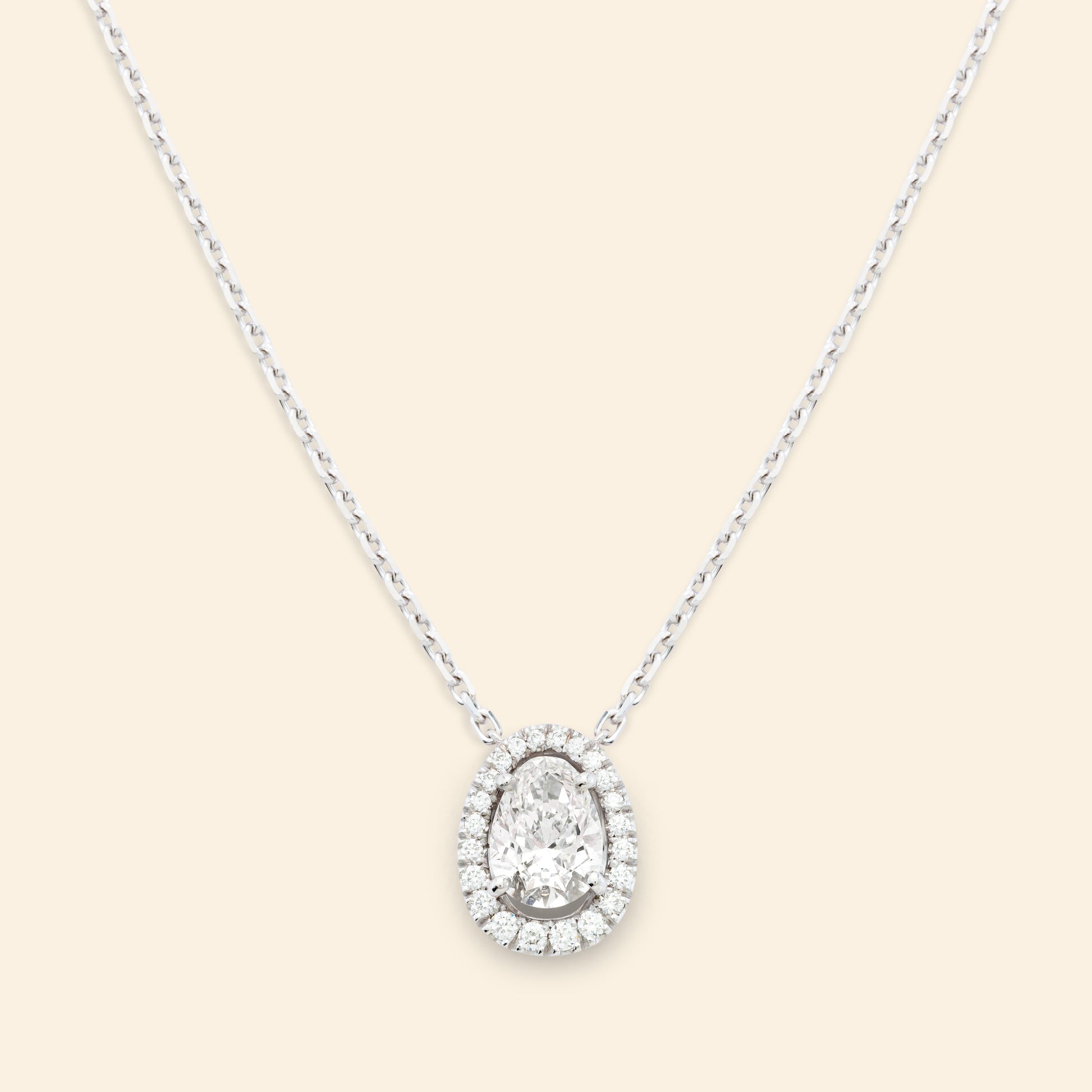 Mellerio Cut necklace in 18k white gold set with a Mellerio Cut diamond and paved with diamonds.